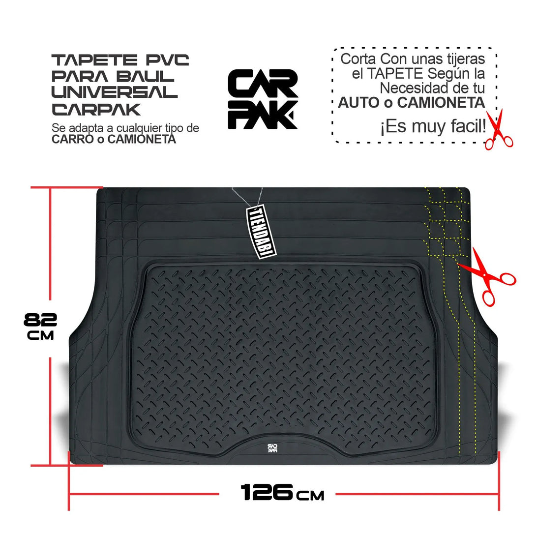 Incorpora este tapete en tu automóvil y experimenta la tranquilidad de contar con un espacio organizado y protegido. Ideal para quienes valoran la limpieza y el orden en su vehículo, el Tapete Para Baúl PVC Talla Universal es la elección perfecta para cada conductor.